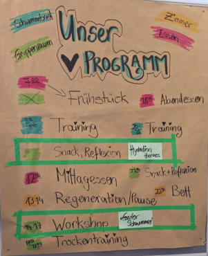 verbrachten. Neben dem Schwimmtraining standen auch Workshops auf dem Programm, die sich mit Themen wie