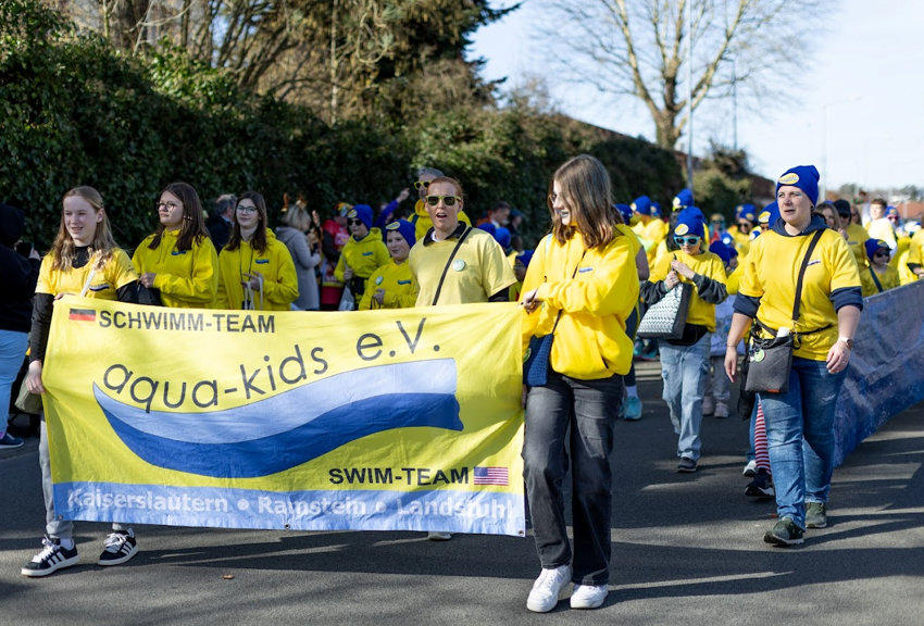 Ramstein: Bei strahlendem Sonnenschein präsentierten sich die Aqua Kids beim diesjährigen Westricher Faschingsumzug in Ramstein in leuchtend gelben Outfits und zogen viele Blicke auf sich. Die große Gruppe, bestehend aus vielen begeisterten Schwimmern, war ein echter Hingucker. Die Kinder und Jugendlichen trugen stolz ihre neuen Mützen, die eigens für diesen besonderen Anlass gestaltet wurden. Unterstützt von engagierten Eltern, die bei der Organisation und Durchführung halfen, zeigten die Aqua Kids, was in ihnen steckt. Begleitet von guter Musik zogen die jungen Talente durch die Straßen und verbreiteten eine tolle Stimmung. Die Zuschauer wurden von der fröhlichen Atmosphäre mitgerissen und klatschten im Takt der Musik. Besonders der eigens komponierte Aqua Kids Song sorgte für Begeisterung und animierte das Publikum zum Mitsingen. Die Aqua Kids hatten sichtlich viel Spaß und genossen den Tag in vollen Zügen. „Es ist schön zu sehen, wie viel Spaß die Kinder hatten und wie gut sie von der Gemeinschaft unterstützt werden.“, lautete das Fazit der zufriedenen Trainer. Aqua Kids Go, Go, Go!!! Liam Hughes und Quentin Arbour Marie Geißert, Trainerin Swetlana Schick, Johanna Palm Mathilda Fett, Swetlana und Lilli Schäffner Carola Götzinger und Julia Mahl (die Vorbereiterinnen) Marlene Draudt, Emma Götzinger, Olivia Helou und Lisa Lin Eneko und Hugo Cambeses und Alex und EJ Risvanoglu Swetlana Schick, Nina Urschel und Gerd Backhaus Aquakids Jugendarbeit